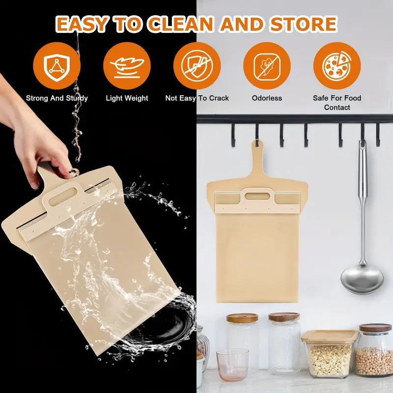 The Slider Peeler ensures that you can effortlessly lift anything, preventing it from sticking. It provides a smooth surface, facilitating the transfer.